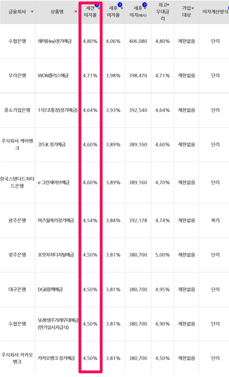 예금금리 가장 높은 곳은 4.80% 수협은행 헤이(Hey)정기예금으로 확인되나 아래의 최신 중요 UPDATE내용을 꼭 참조하시기 바랍니다.
