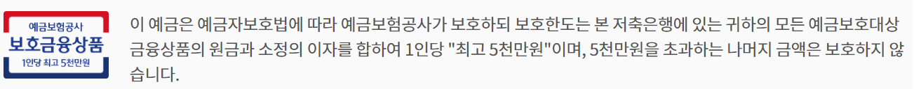 예금 원금과 이자를 합쳐 5천만원까지 입니다.